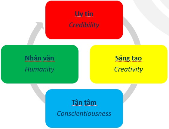 4 giá trị cốt lõi là nền tảng để chúng tôi xây dựng thương hiệu, xứng đáng với sự tin tưởng của khách hàng, đội ngũ nhân viên và là điều kiện cần để chúng tôi đạt được các mục tiêu chiến lược hiện tại và tương lai.